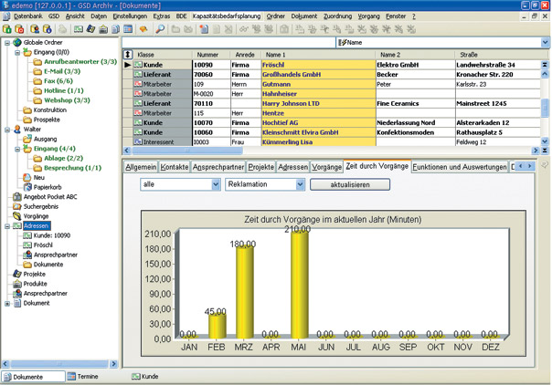 Durch die Möglichkeit individuell generierbarer Dialoge, Funktionen und Abfragen lassen sich zudem alle Daten in kompakter und aussagekräftiger Form extrahieren: für die Firmenleitung als Management-Informationssystem und für alle anderen als Wissensdatenbank. Alle Informationen bleiben also im Unternehmen, auch wenn ein Mitarbeiter dieses verlässt. Durch die Möglichkeit der Vergabe von verschieden Sicherheiten kann definiert werden, welche Befugnis jeder Anwender hat.